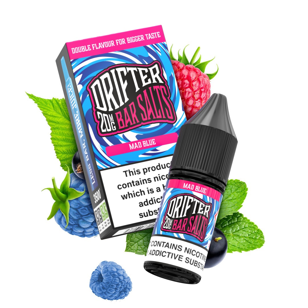 Unleash your wild side with Drifter Bar Salts Mad Blue 10ml e-liquid! Prepare for a flavour frenzy that will ignite your taste buds. With an impressive 5x more e-liquid compared to traditional disposables, it offers unbeatable value. Dive into the mysterious blend of juicy blueberries, tantalising berries, and a hint of coolness. Available in 10mg and 20mg strengths, it caters to your nicotine preferences. Each bottle delivers approximately 3500 puffs of pure satisfaction. The 50PG/50VG blend ensures a smooth and enjoyable vaping experience. Experience the untamed taste of Drifter Bar Salts Mad Blue 10ml e-liquid and let your senses run wild with flavour!